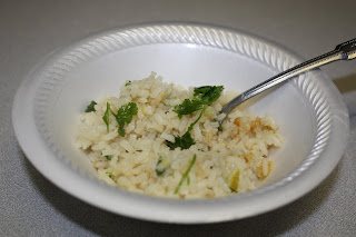 I was @ my mom's house and was looking through a cookbook that she had. It was a cookbook that the town of Lewiston had put together. I had been looking for a good Cilantro Lime Rice recipe so I thought I would give this one a try.